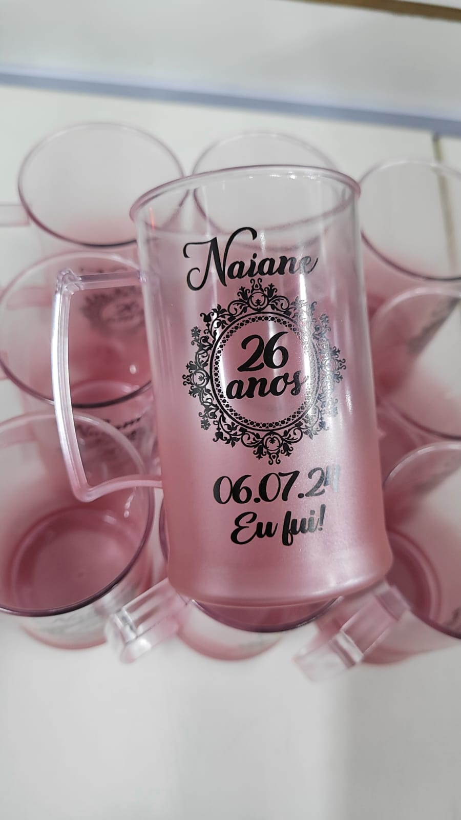Caneca de chopp com material em acrílico transparente jateado nas cores desejadas